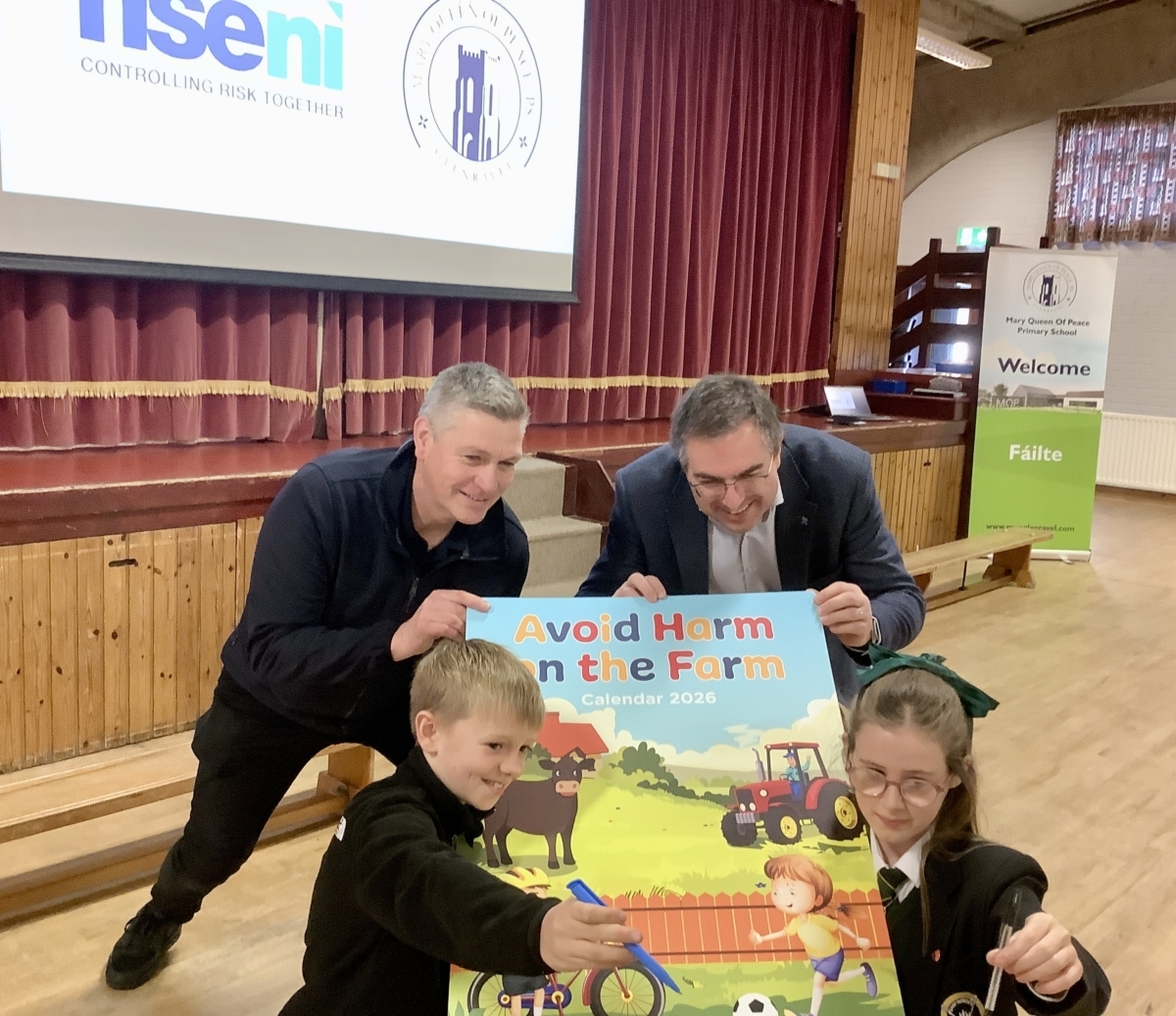 The HSENI launched their 2026 calendar here in Glenravel. The HSENI Management Team, including Robert Kid (Chief Executive) and David Lowe (Head of Agri-Team) took the opportunity to visit Mary Queen of Peace PS in recognition of the school having two entries in the 2026 calendar.