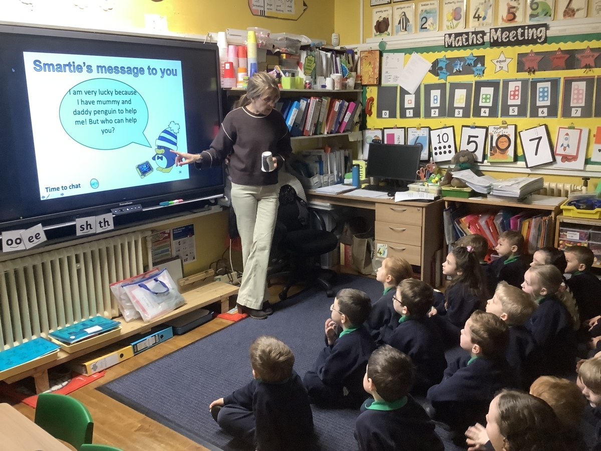 Primary 1 children were learning about 'Roo's New Friend'. They discovered her new friend was actually a voice assistant. We identified things a voice assistant can do (find out facts, set alarms, play music), and the things they cannot do (make the dinner, have feelings, give us hugs!) Smartie the Penguin also helped teach Primary One how to stay safe online. His little song helped everyone remember that it’s important to ask an adult for help.