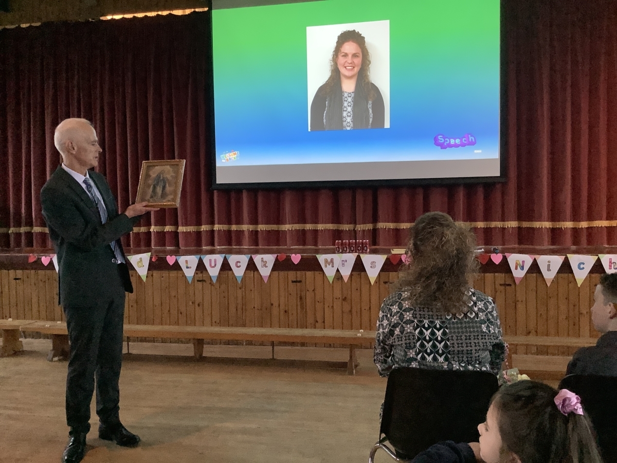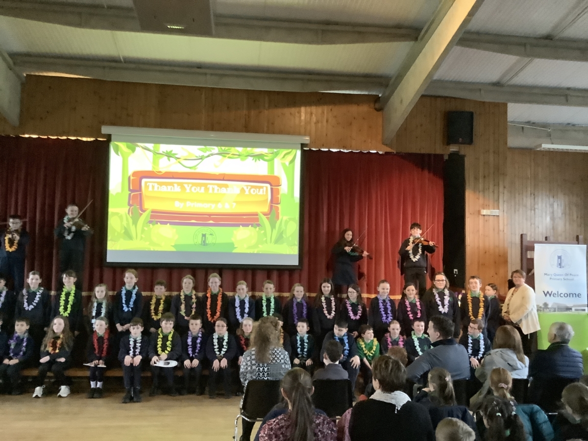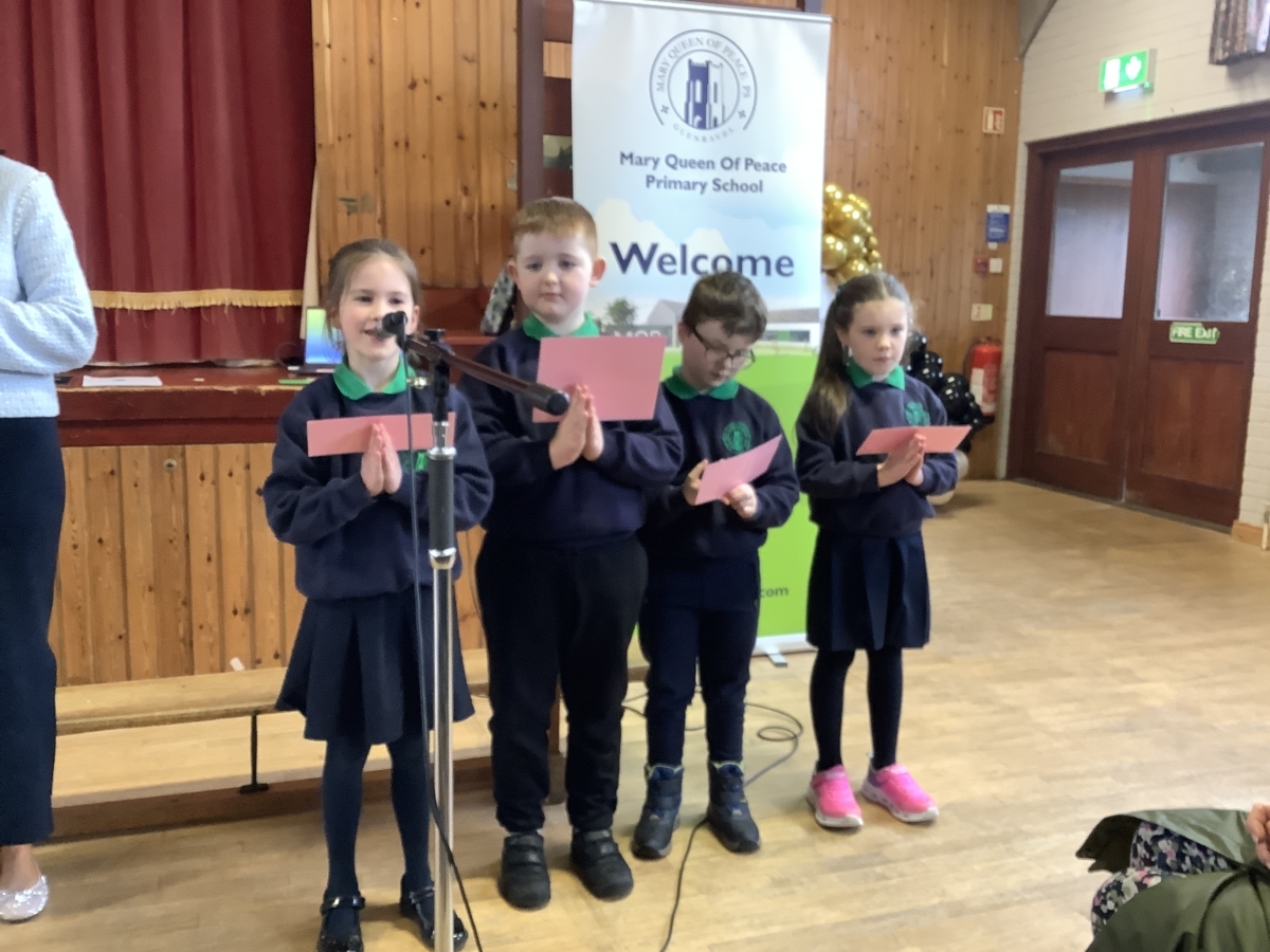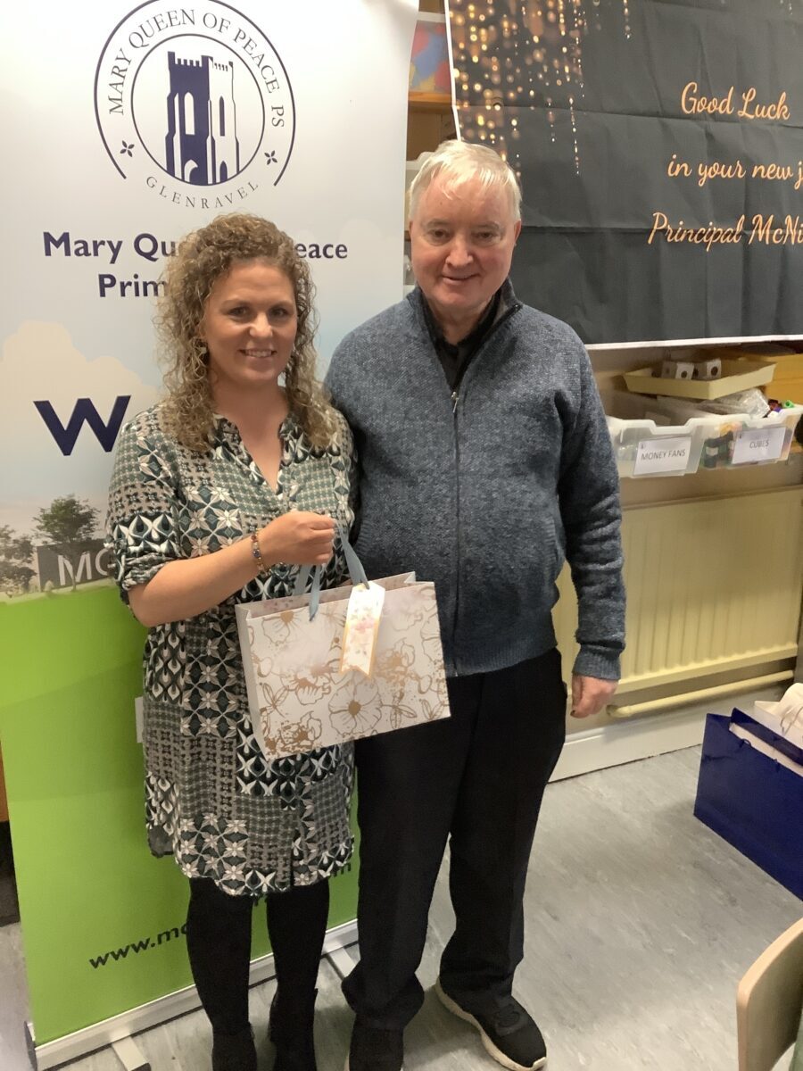 Mrs McNicholl was accompanied by members of her family and we trust that the McNicholl family know just how much we valued her leadership in Mary Queen of Peace PS.