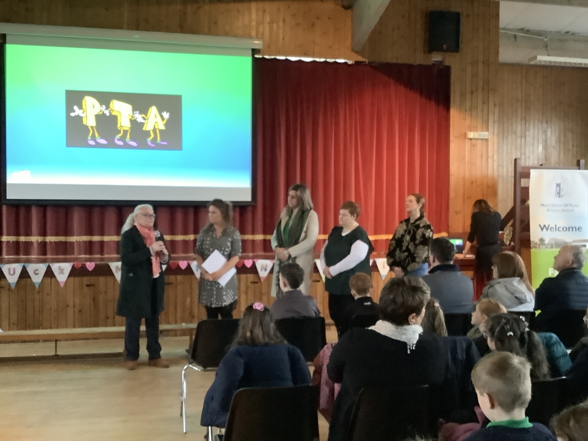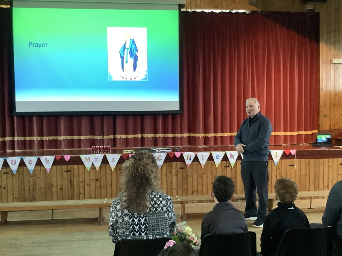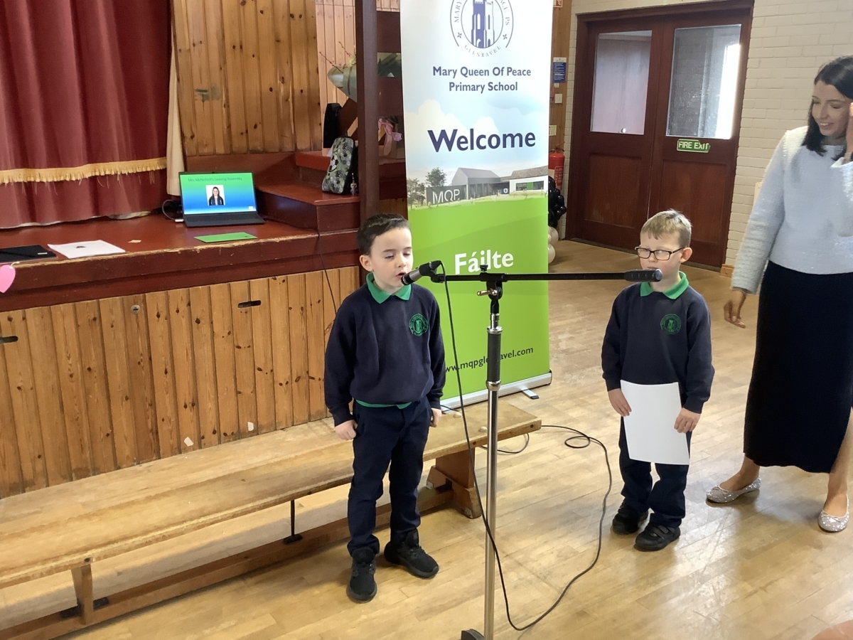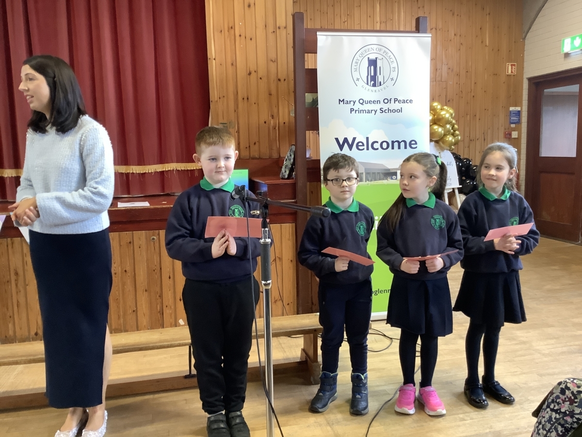 Mrs McNicholl was accompanied by members of her family and we trust that the McNicholl family know just how much we valued her leadership in Mary Queen of Peace PS.