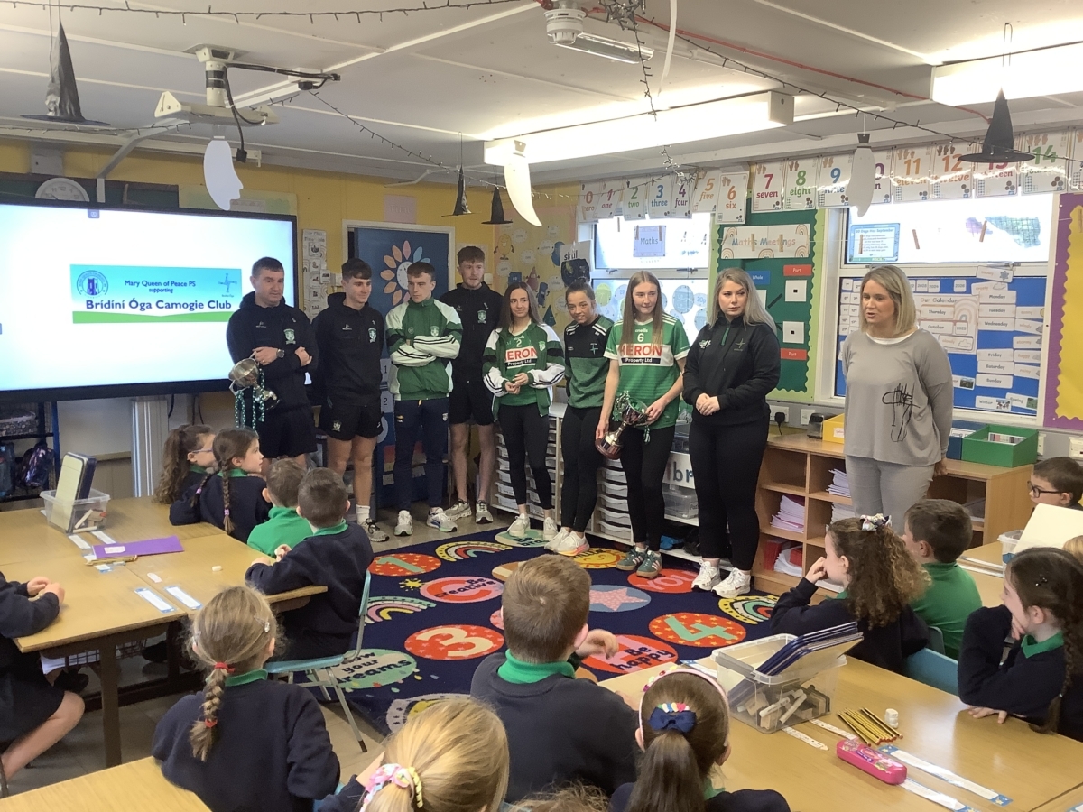 Primary 5 will be singing Amhrán na bhFiann before Saturday's Camogie match at 1 p.m. and treated the rest of the school to a great rendition at today's assembly.