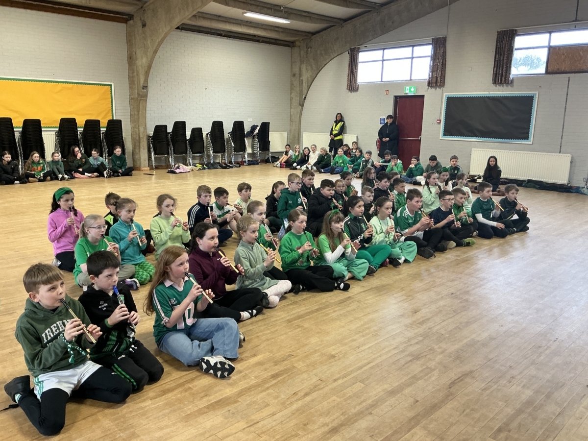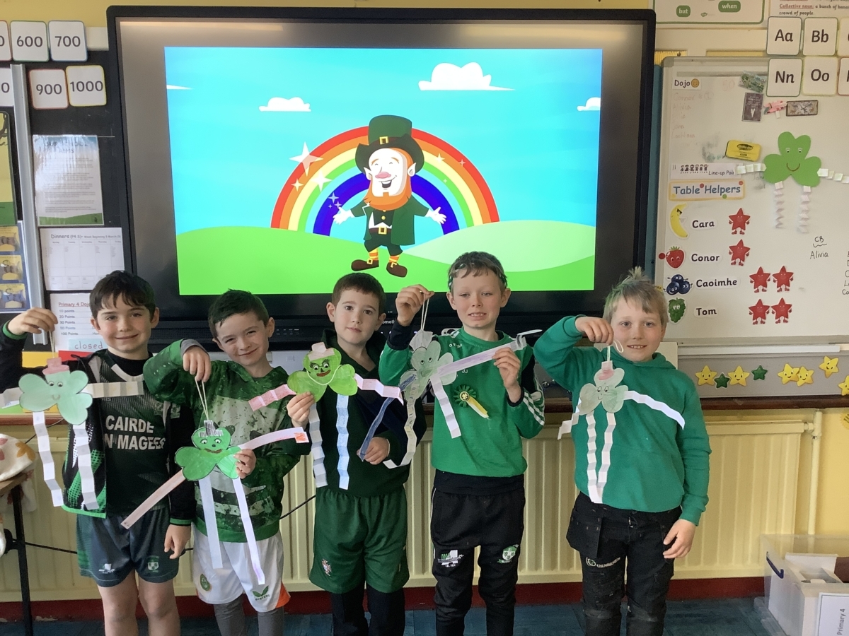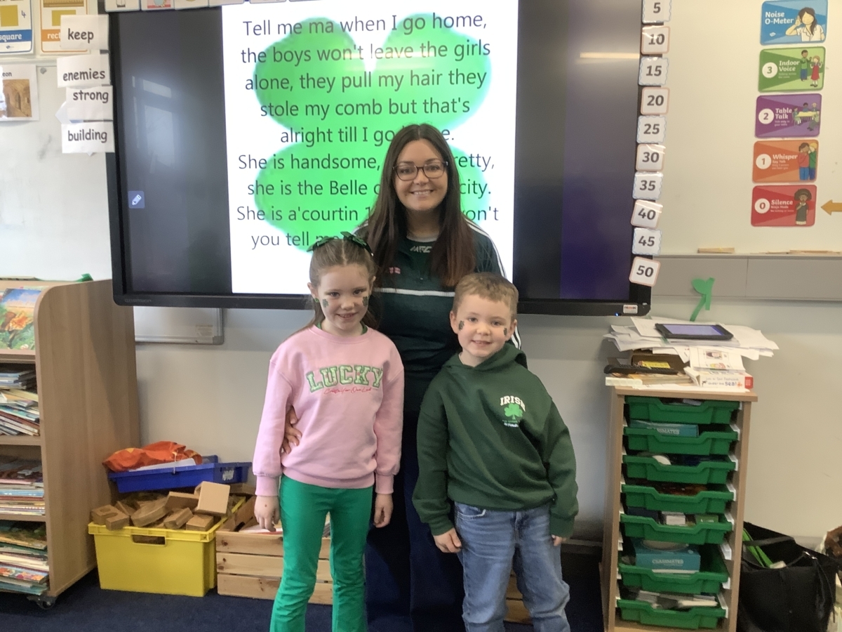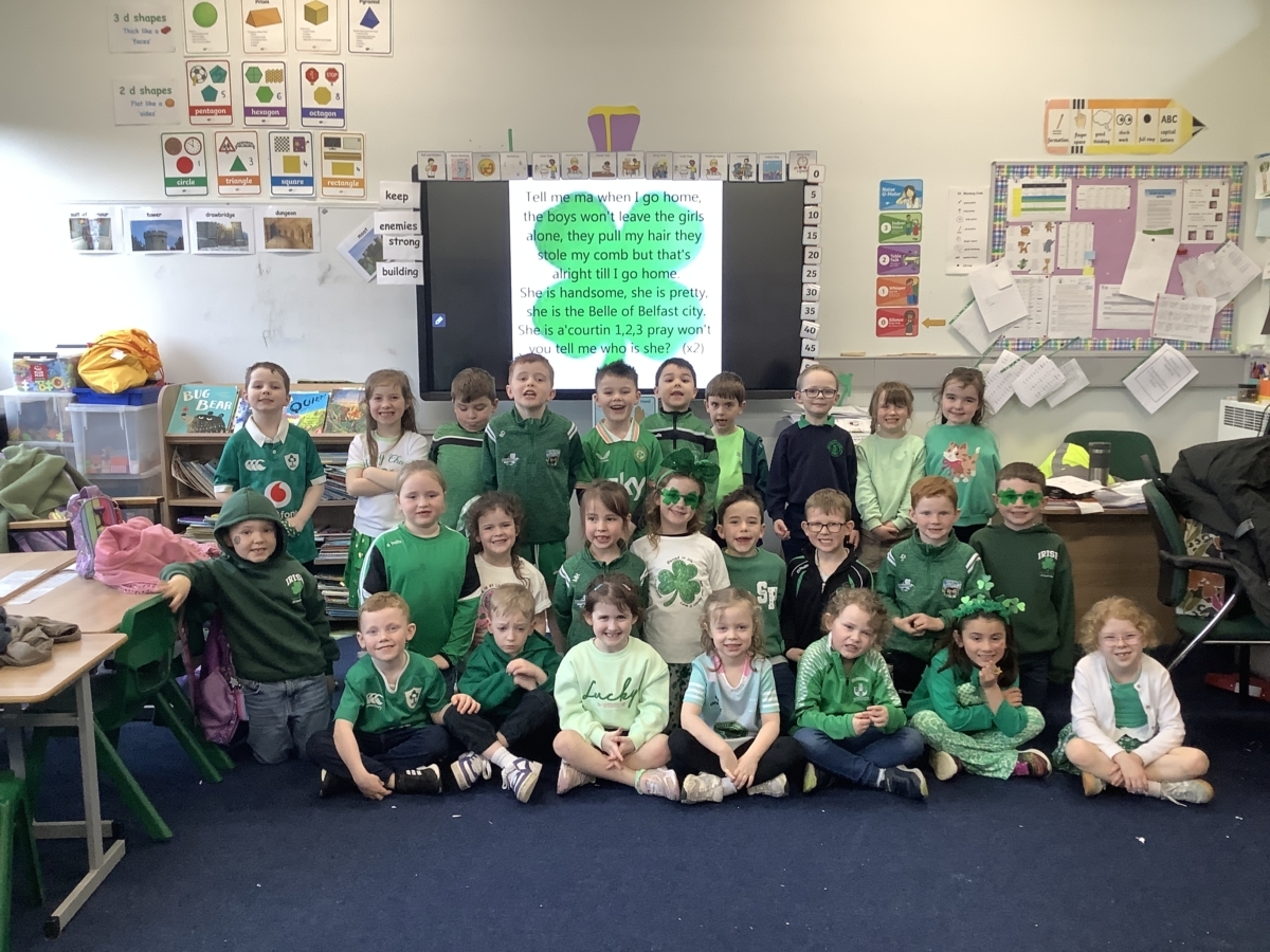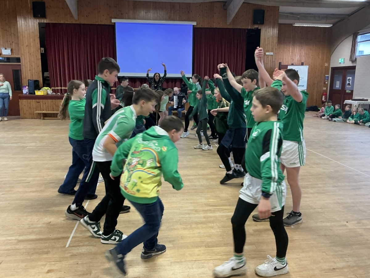 As well as dressing in green and enjoying Irish lessons with Oonagh Hegarty (Con Magee's GAC); we also had singing and dancing, with musical accompaniment from the local Comhaltas group (Donal O'Donnell and Kieran Dempsey). Dance, including traditional global dances, is an important part of our PE curriculum in Term II.