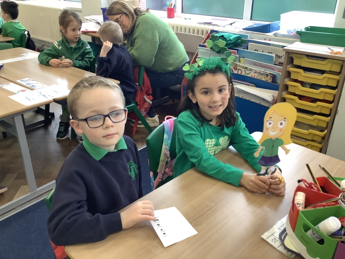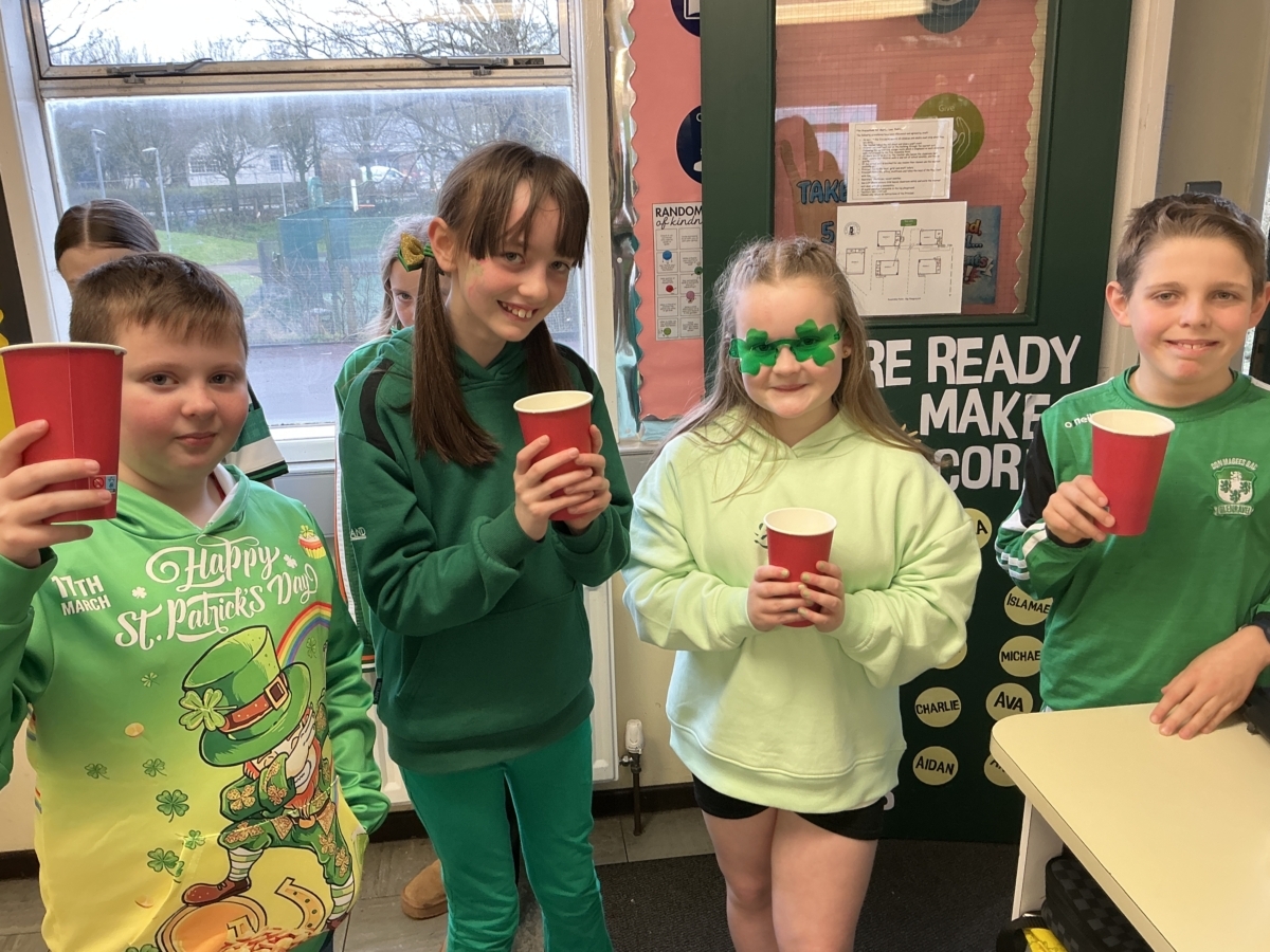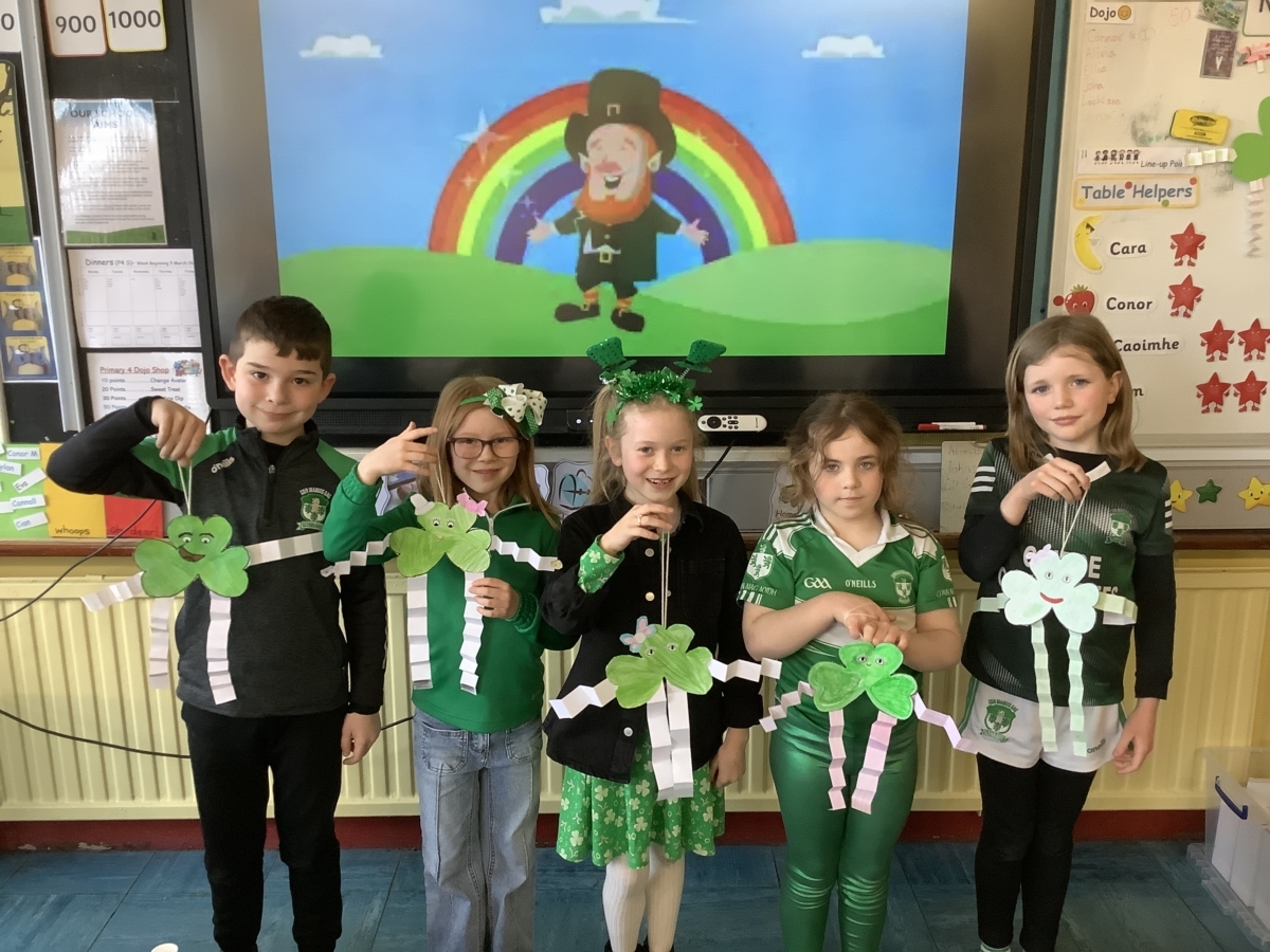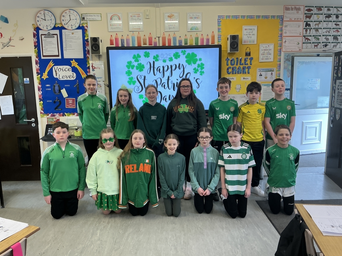 As well as dressing in green and enjoying Irish lessons with Oonagh Hegarty (Con Magee's GAC); we also had singing and dancing, with musical accompaniment from the local Comhaltas group (Donal O'Donnell and Kieran Dempsey). Dance, including traditional global dances, is an important part of our PE curriculum in Term II.