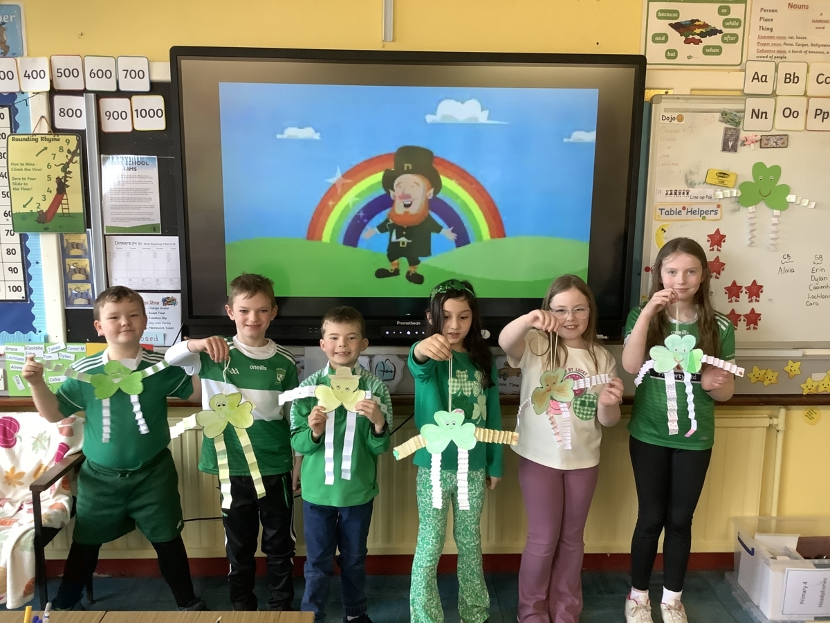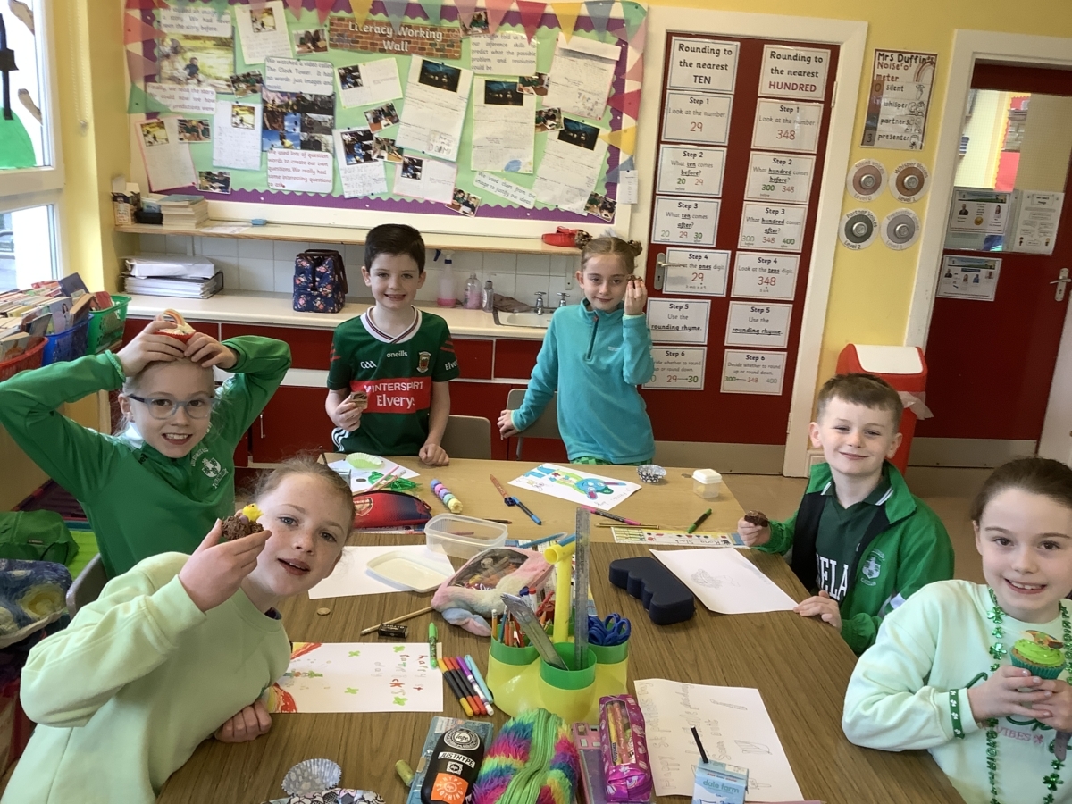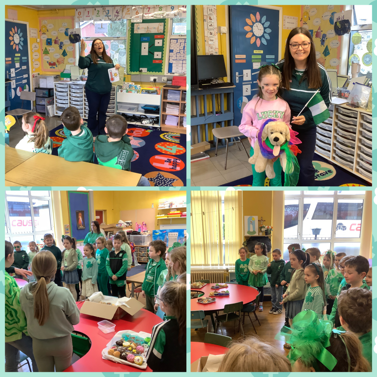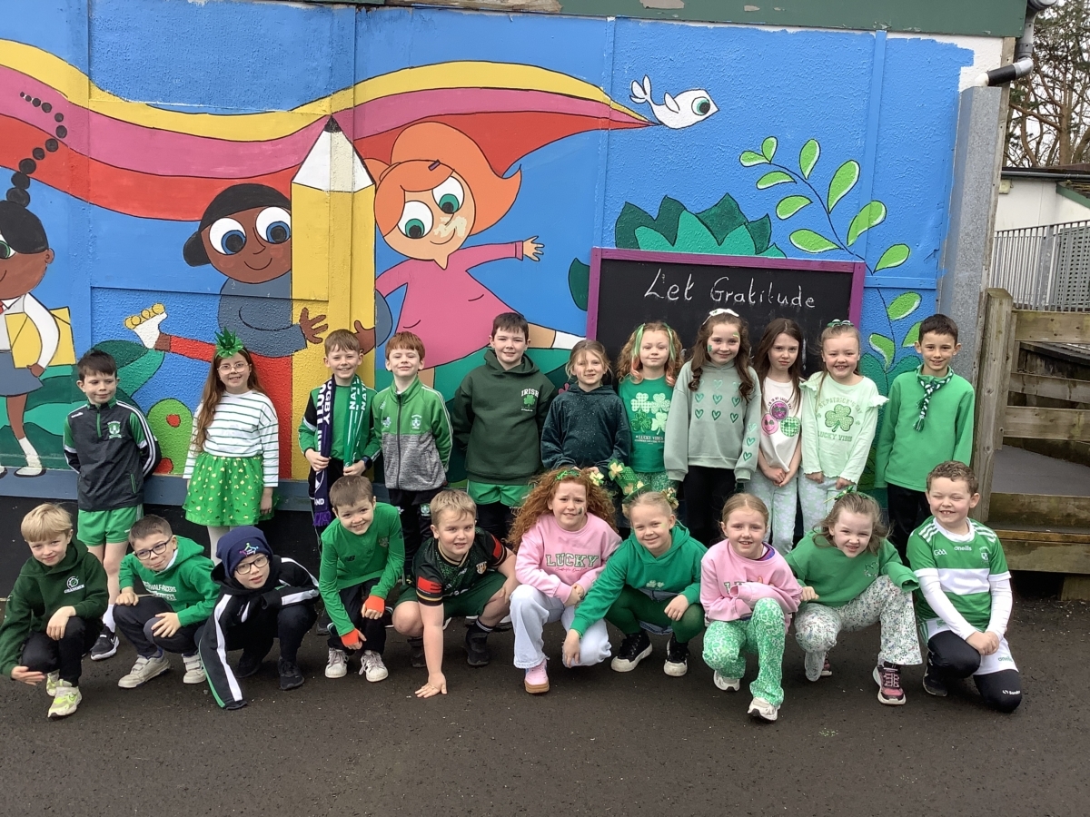 As well as dressing in green and enjoying Irish lessons with Oonagh Hegarty (Con Magee's GAC); we also had singing and dancing, with musical accompaniment from the local Comhaltas group (Donal O'Donnell and Kieran Dempsey). Dance, including traditional global dances, is an important part of our PE curriculum in Term II.