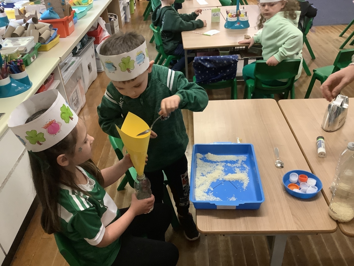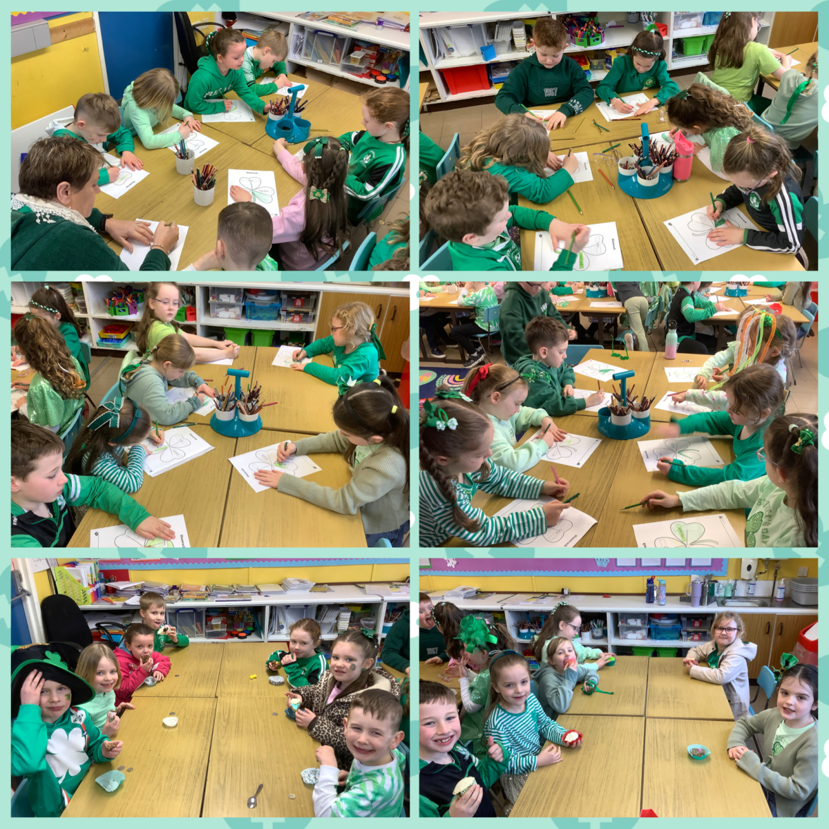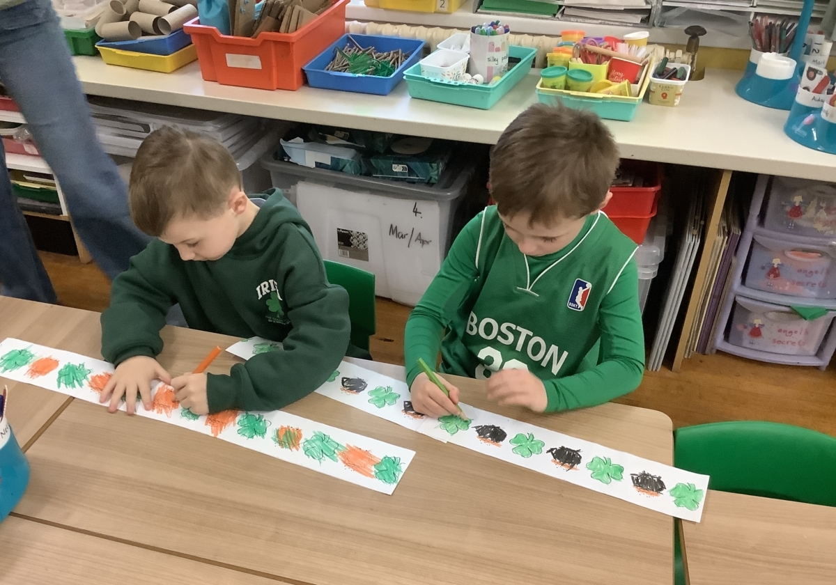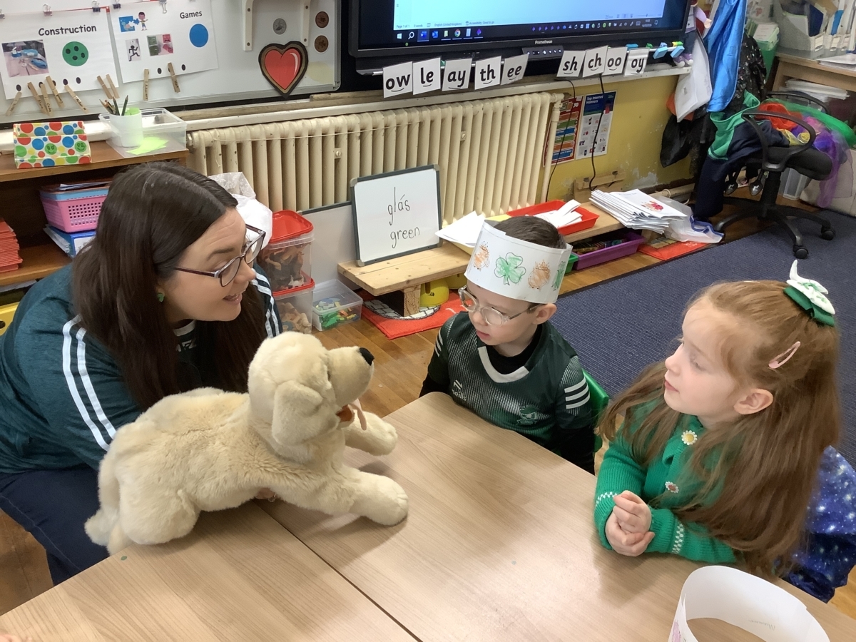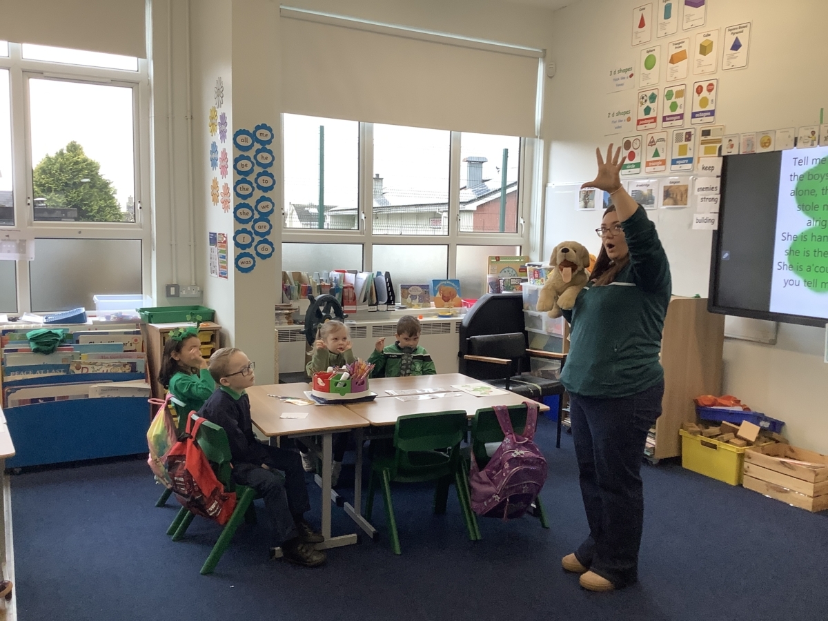 As well as dressing in green and enjoying Irish lessons with Oonagh Hegarty (Con Magee's GAC); we also had singing and dancing, with musical accompaniment from the local Comhaltas group (Donal O'Donnell and Kieran Dempsey). Dance, including traditional global dances, is an important part of our PE curriculum in Term II.