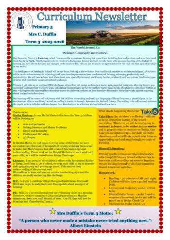Every term the teachers publish a Parent Curriculum Overview, which includes information about the big theme every year group is following. It also tells parents about what the children will be studying in maths, literacy and ICT. Parent Curriculum Overviews also have information about PE, homework and what the children are doing in Personal Development & Mutual Understanding (PDMU).