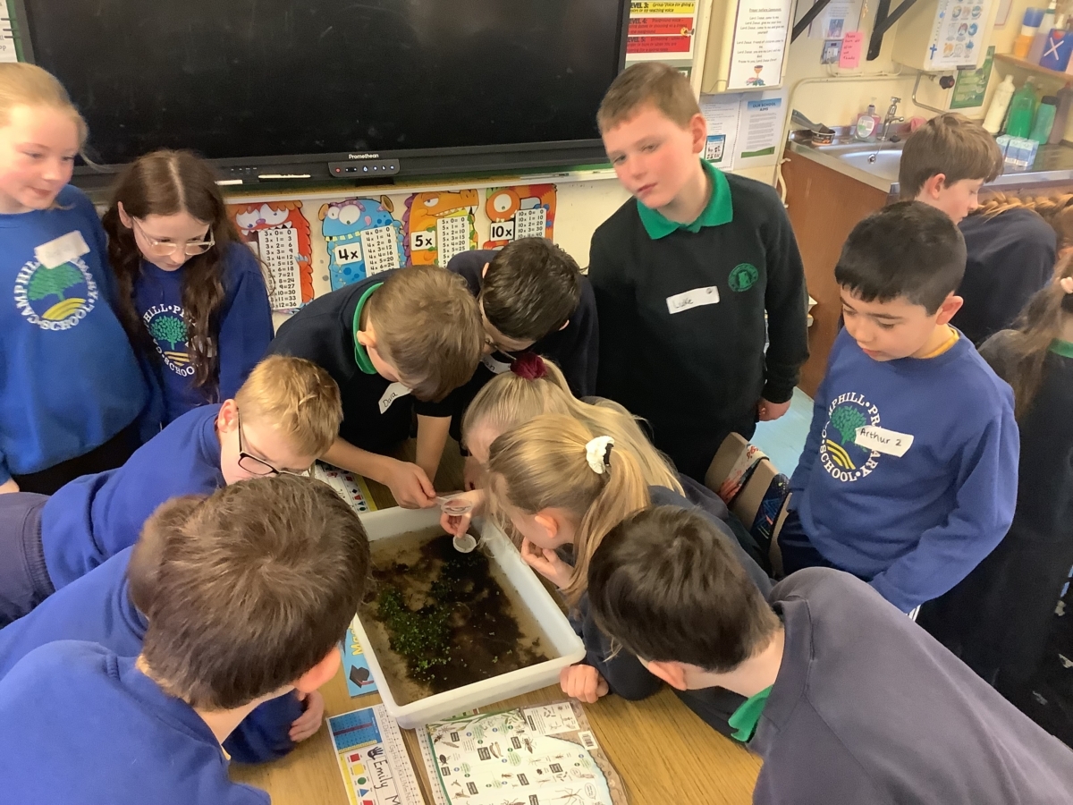 The third activity was led by two gentlemen from Keep Northern Ireland Beautiful. The children worked in groups as they tried to identify a variety of pond, river and lake creatures using a classification key.