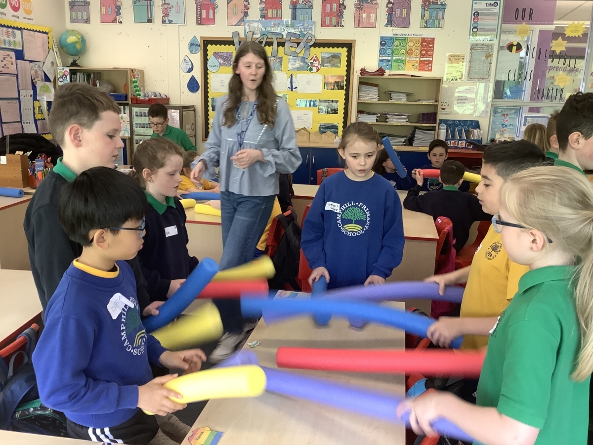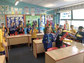 Lastly, the children participated in Cardio Drumming session, using pool noodles to tap different rhythms. Children them worked in groups to plan their own rhythms to the tune “We Will Rock You.”