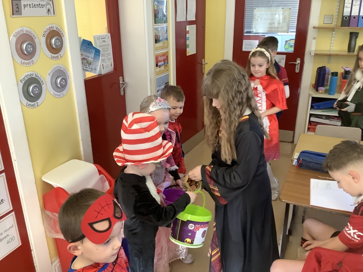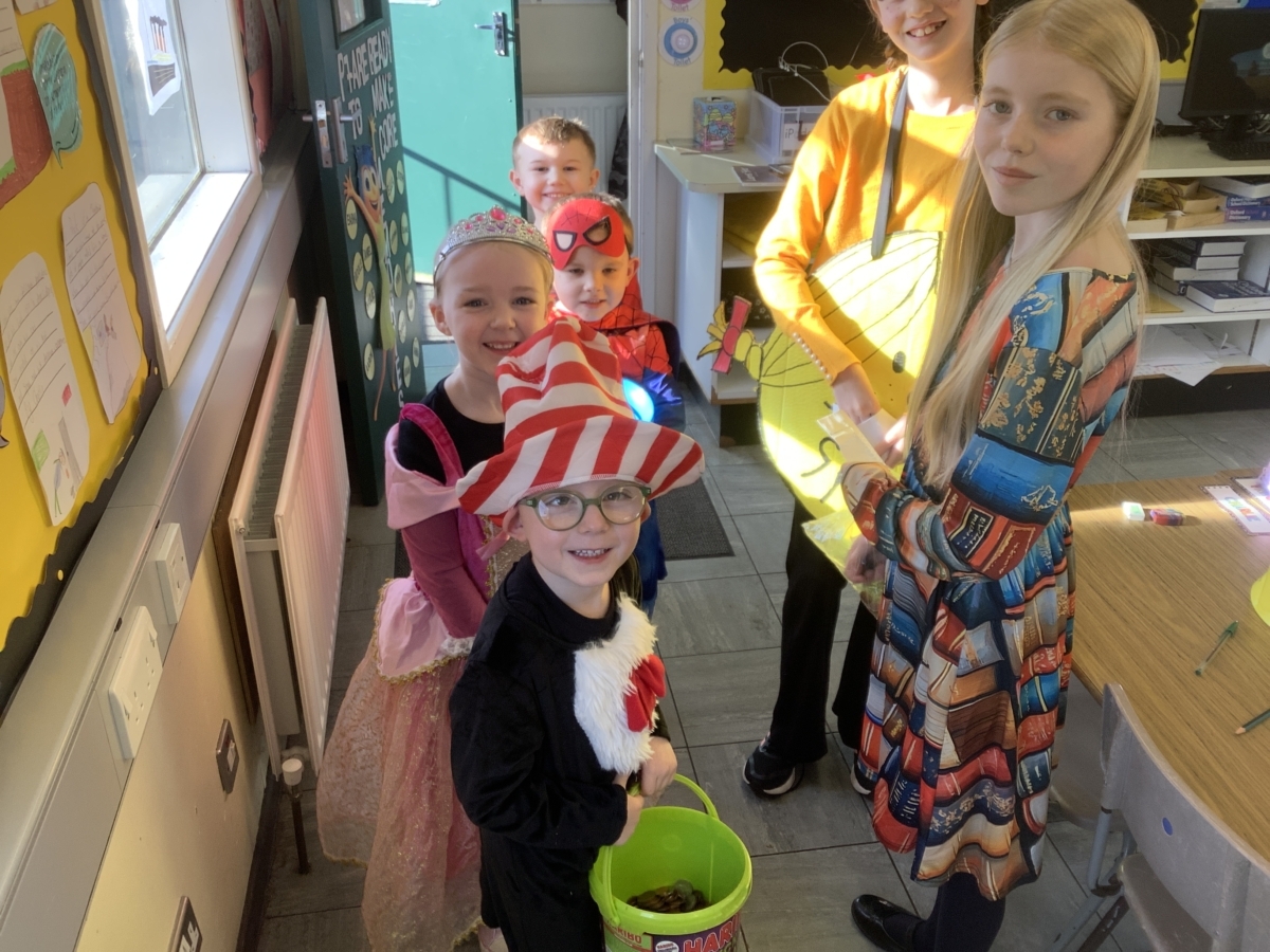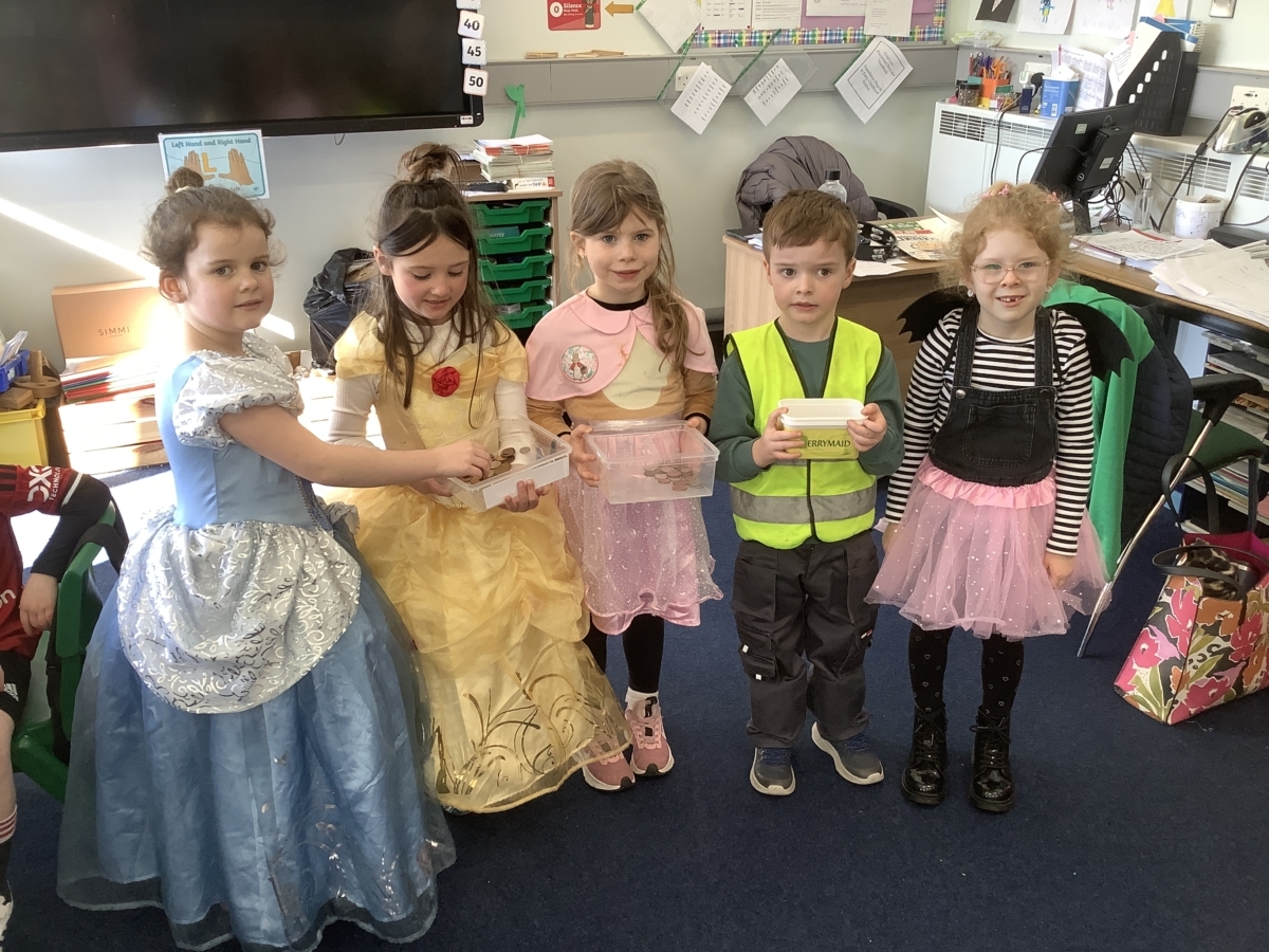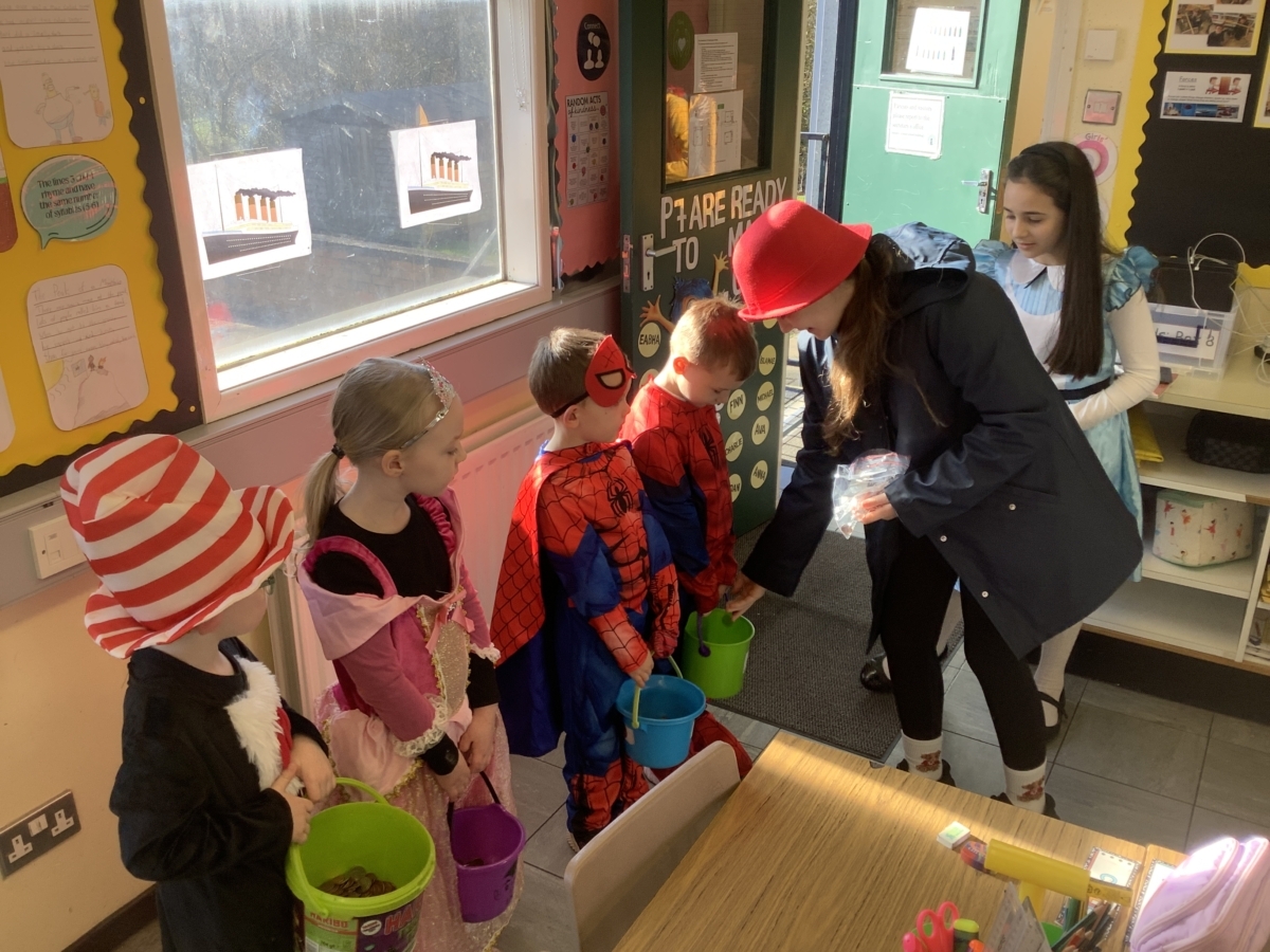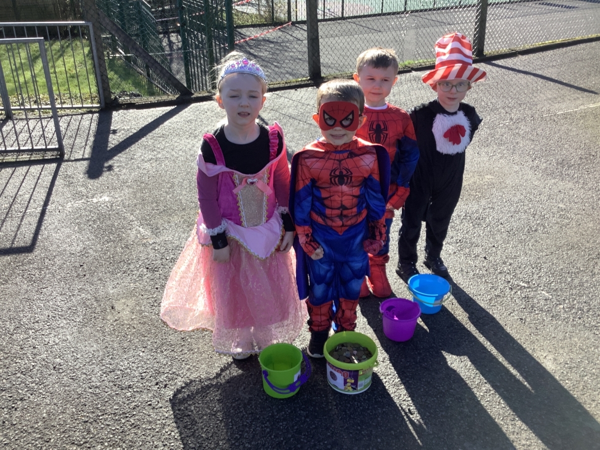 We are already at Trócaire Week 3. Primary 1 visited the classes (on World Book Day) to collect loose change.